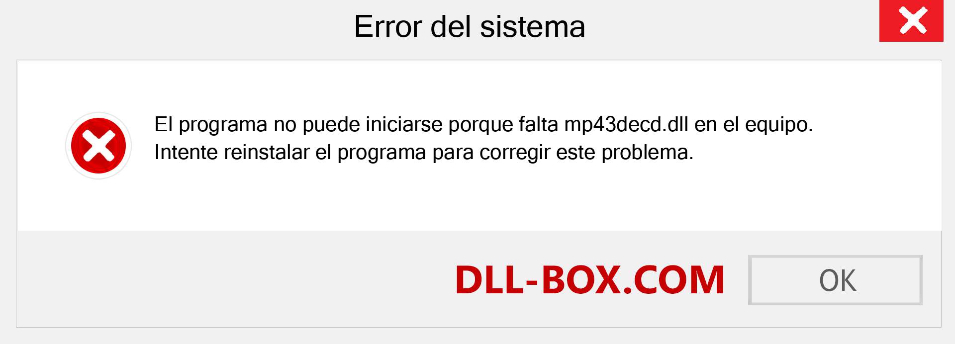4. La ejecución del código no puede continuar porque no se encontró mp43decd.dll. La reinstalación del programa puede solucionar este problema.